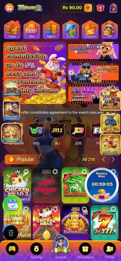Unlike traditional mobile games where you only play for fun 77Plus introduces a reward system where users can collect points or balance through gameplay and promotional activities. You can also get more rewards from W333 game.