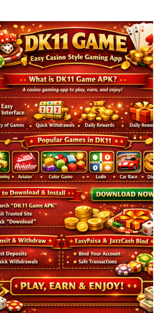 The DK11 Game APK is an Android application that allows users to play different casino-style games in one place. It offers quick games, simple rules, and a smooth experience.In addition, the app is made for users who want instant fun without long learning steps. Everything is clear, so players can start playing within minutes.