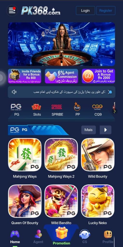 | PK368 | Slots, Dragon Tiger, Roulette | JazzCash, Easypaisa | PKR 200 | Urdu UI, VIP system |