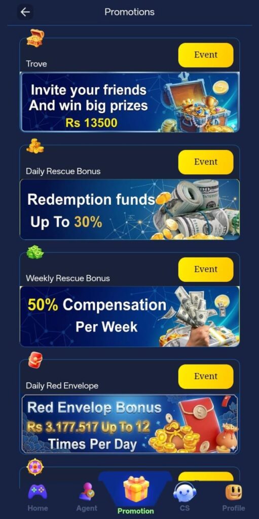 A percentage of your weekly losses is returned to you typically 3–5% - Festival Bonuses: Limited-time promotions are offered during special occasions like Eid and Independence Day